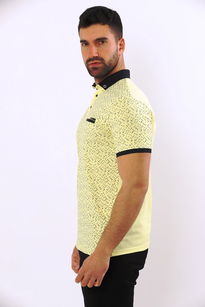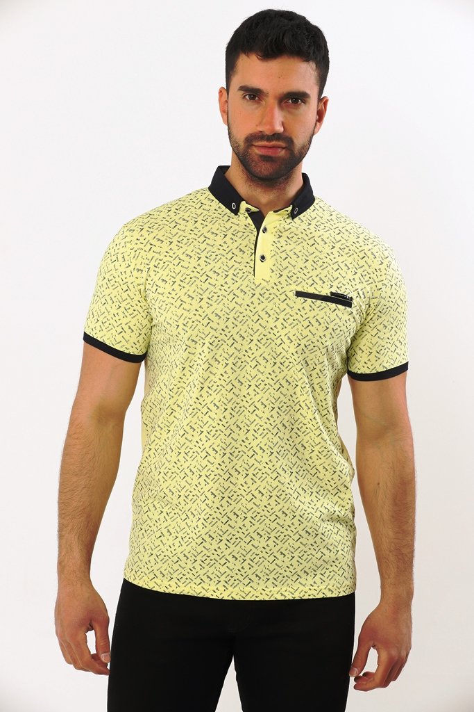 21154-Erkek Polo T-shirt Sarı